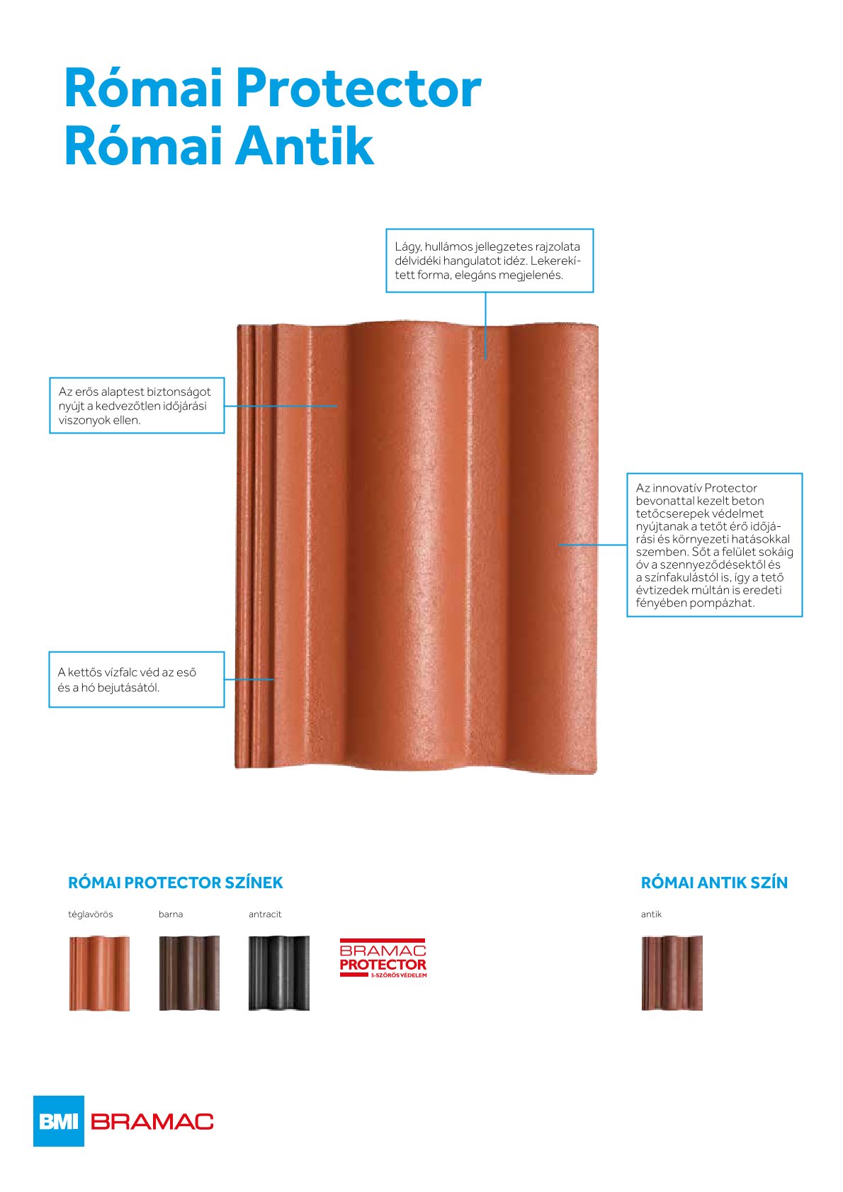 A BMI Bramac PRÉMIUM kategóriájában a Római, Reviva és Tectura modellek Antik színben is kaphatóak.